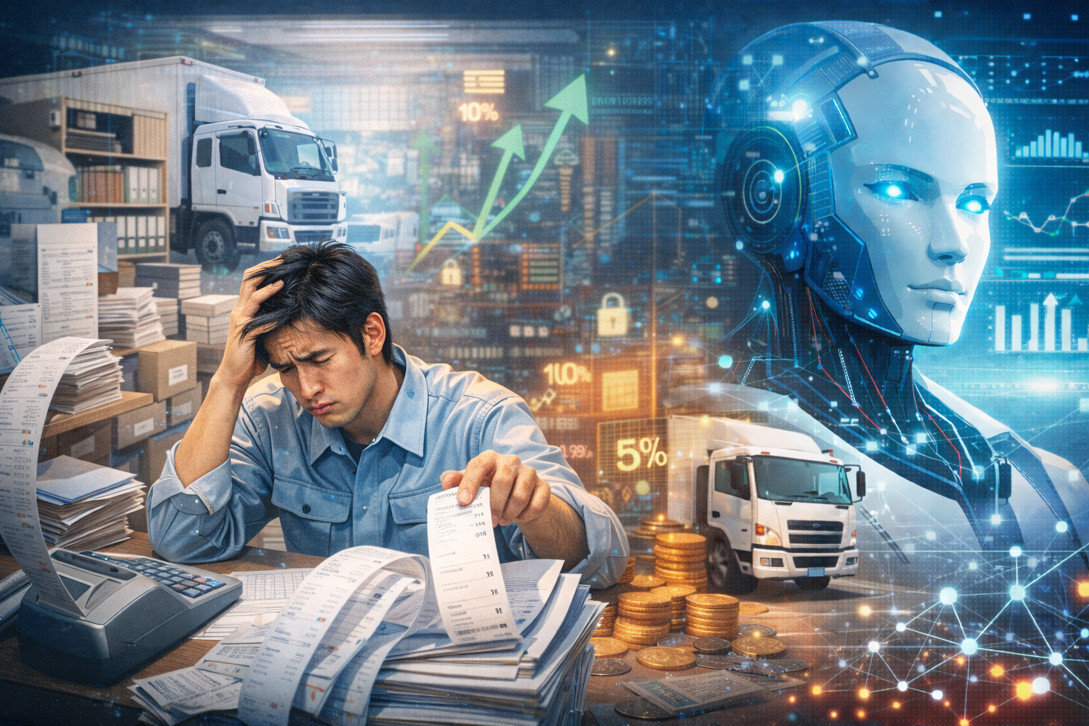 請求書発行、傭車支払、燃料費精算、未収管理。これらが特定の担当者の経験や勘に依存している状態は、一見安定しているようで極めて脆弱です。AIは経理担当者を減らすためのものではありません。人の最終判断を守るために、確認・照合・計算を構造化する支援装置です。属人化を放置すれば、利益は静かに漏れ続けます。