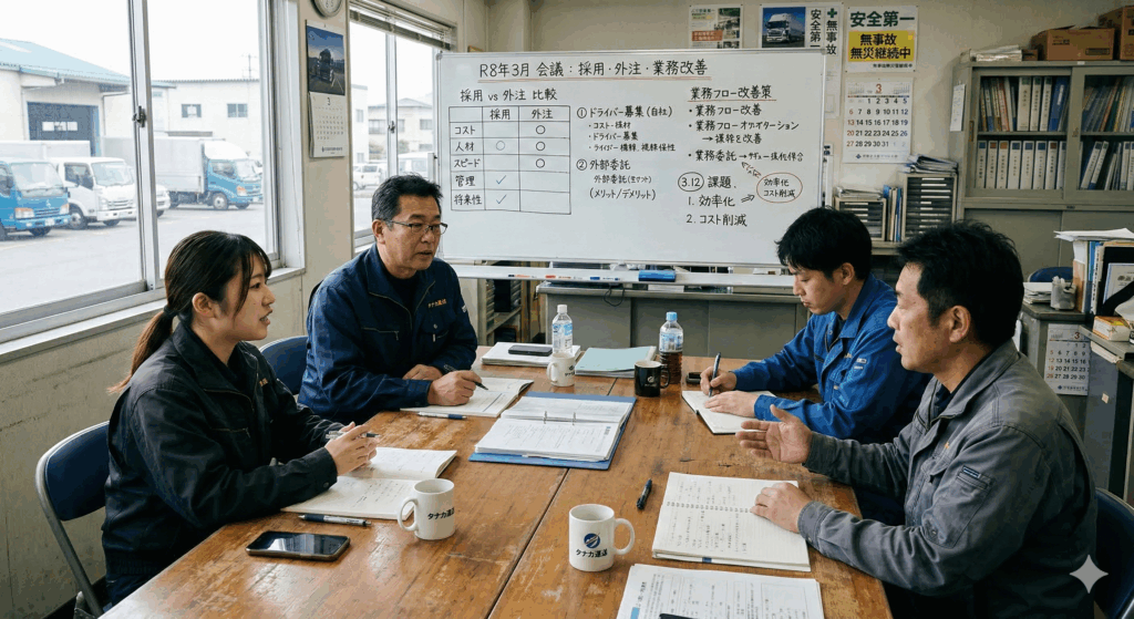 点呼・日報・勤怠・デジタコの整合、帳票の接続、修正指示の要点整理などを支援します。